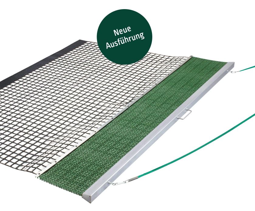 UV-beständige PVC-Gittermatte mit Aluminium-Spezialprofil und Zugschnur.Gewicht ca. 7 kg
