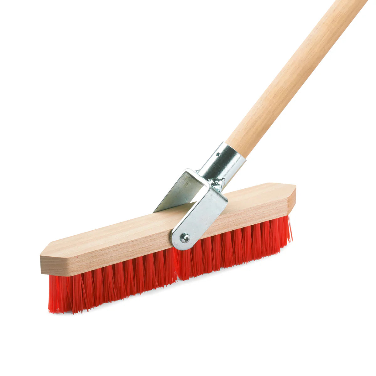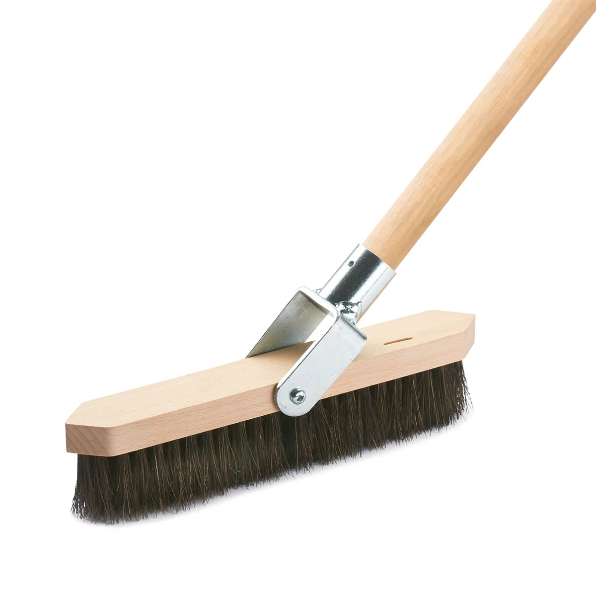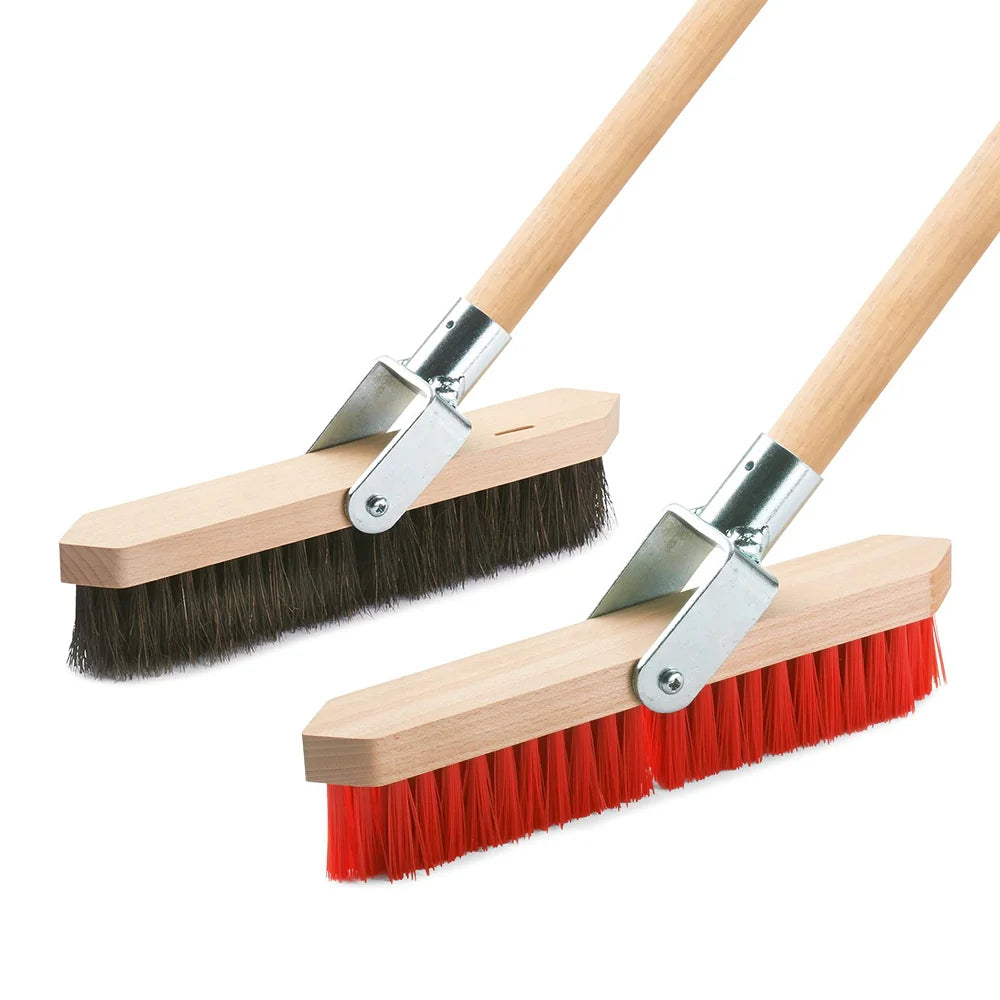 Der erstklassige Linienbesen mit einer beweglichen Stielaufnahme und einem spitzen Bürstenkopf ermöglicht eine schnelle und gründliche Reinigung von verschmutzten Tennislinien. Den Handbesen gibt es mit roten Kunststoffborsten aus PVC oder mit natürlichen Arenga-Borsten. PVC-Borsten verkleben bei Feuchtigkeit nicht, Arenga-Borsten erzielen bei Trockenheit ein sehr gutes Reinigungsergebnis. Durch den kurzen, 4 cm breiten Borsten-Besatz kann man die Linienbürste bequem vor sich herschieben. Die Stielaufnahme ist mit einem beweglichen Metallgelenk ausgerüstet, was eine besonders leichte Handhabung des Besens ermöglicht.