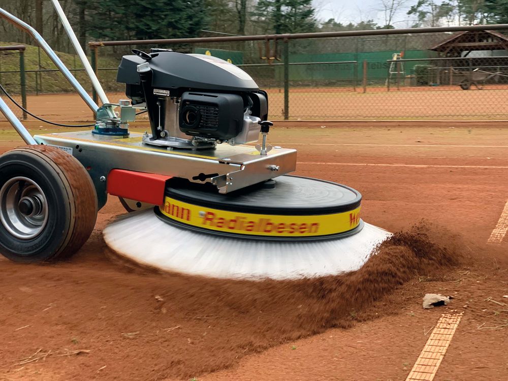 Altes, verbrauchtes Material wird mit dem Turbo-Radialbesen abgekehrt und durch den Schwadformer seitlich angehäuft. Durch die breiten Ballonreifen entstehen kaum Druckstellen. Ausgestattet mit einem hochwertigen Honda Motor und einem Polypropylen-Doppelborsten-Besen.